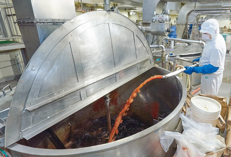 すべての原料を入れたら、蒸気で加熱・殺菌し、風味豊かなソースへと炊き上げていきます。
