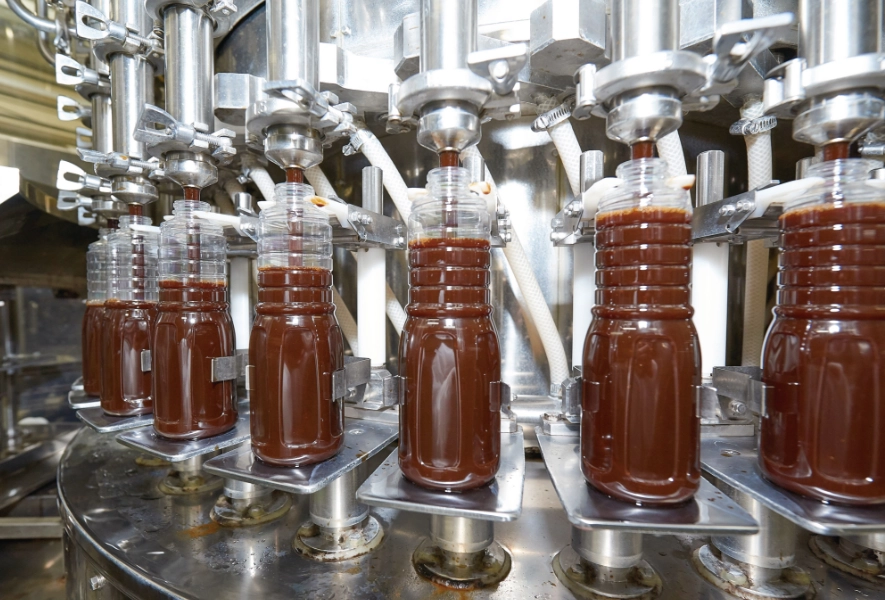 ソースは冷却してボトルに充填し、すぐに栓をして密封します。